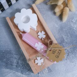 Glück Stabkerze Geschenkset mit Kleeblatt Kerzenständer – Geburtstag Glücksbringer