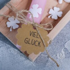 Du suchst ein wundervolles Geschenk bzw. einen kleinen Glücksbringer? Dann ist unser Geschenkset Glück mit einem Kleeblatt Kerzenständer die perfekte Geschenkidee. Die Kerze mit einem Kleeblatt Motiv befindet sich in einer passenden Geschenkverpackung aus Holz und ist fertig verpackt zum Verschenken .