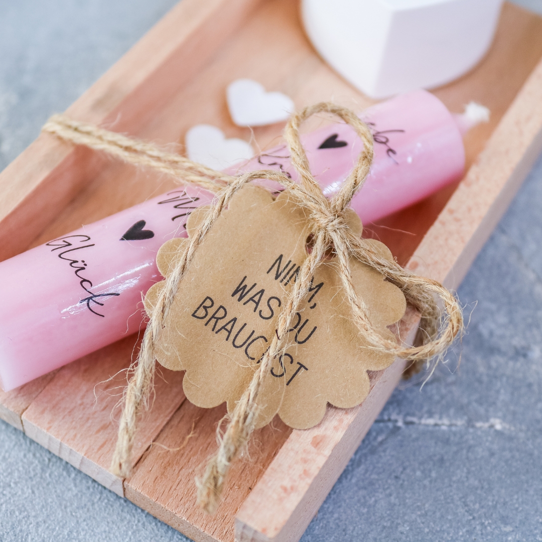 Du suchst nach einem persönlichen Geschenk für deine beste Freundin, Mama oder Tochter? Dann ist unser Geschenkset Nimm was du dir brauchst die perfekte Geschenkidee. Eine Kerze mit 4 mutmachenden Wörtern befindet zusammen mit einem Kerzenständer aus Raysin in einer passenden Geschenkverpackung aus Holz und sindfertig verpackt zum Verschenken.