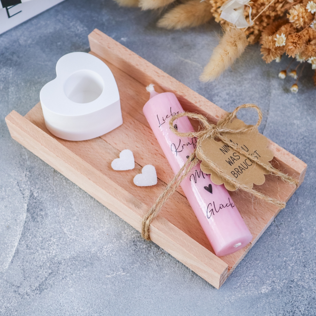 Kleines Geschenkset Nimm was du brauchst mit Stabkerze & Kerzenständer aus Raysin