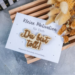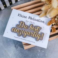 Der Magnet aus Holz ist ein wundervolles Geschenk und Mitbringsel zur Motivation und zum Mutmachen. Du kannst aus verschiedenen Sprüchen deinen Favoriten auswählen. Ein kleines Kompliment für zwischendurch, eine Motivation für schwierige Zeiten, eine tägliche Affirmation für dich.