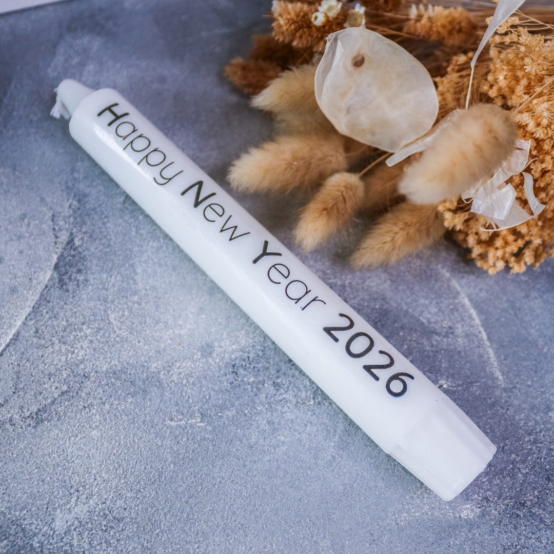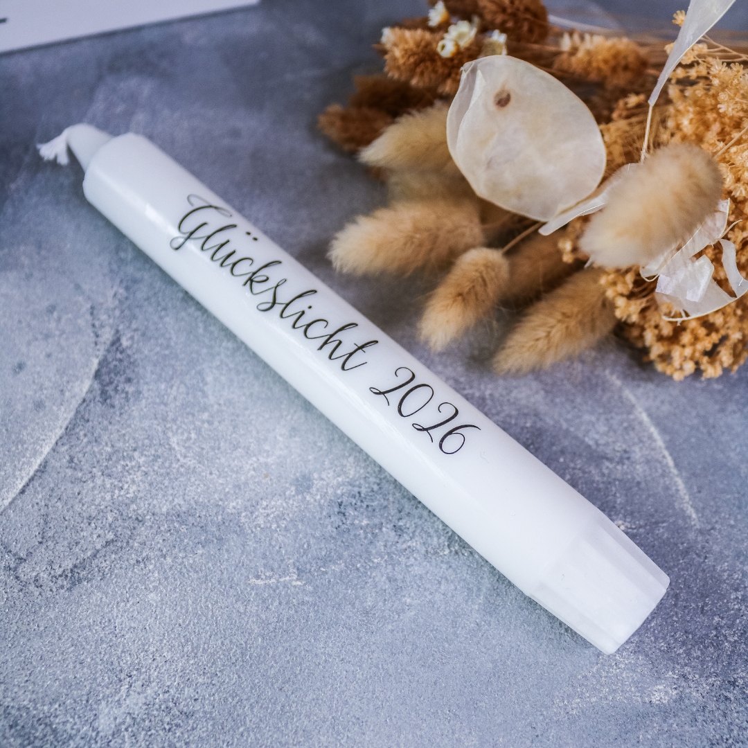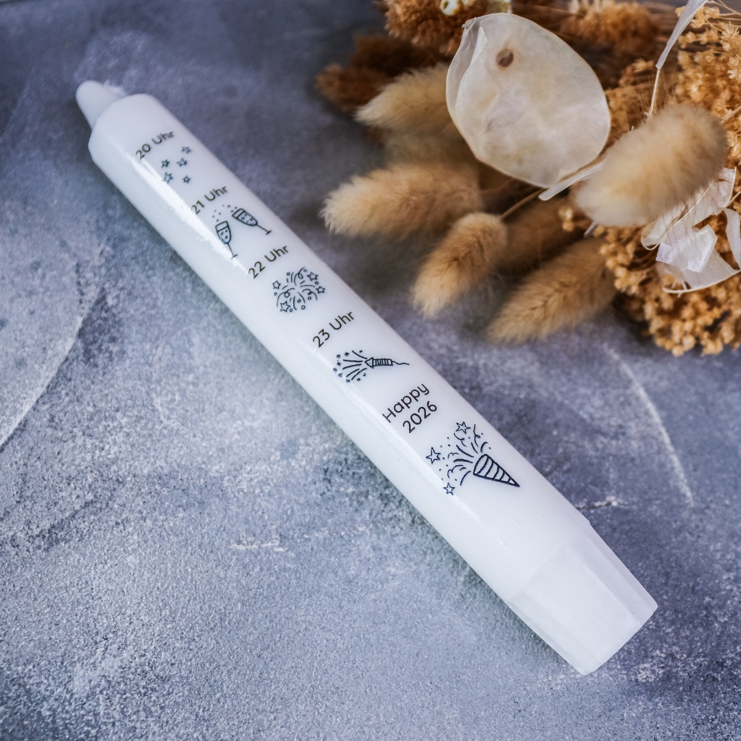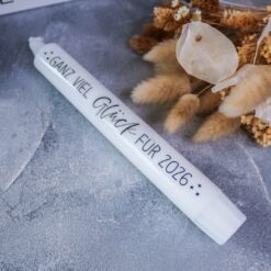 | Beschriftung | Silvester Countdown, Happy New Year 2026, Silvesterlicht, Ganz viel Glück für 2026, Frohes neues Jahr, Glückslicht 2026, Glückskerze |