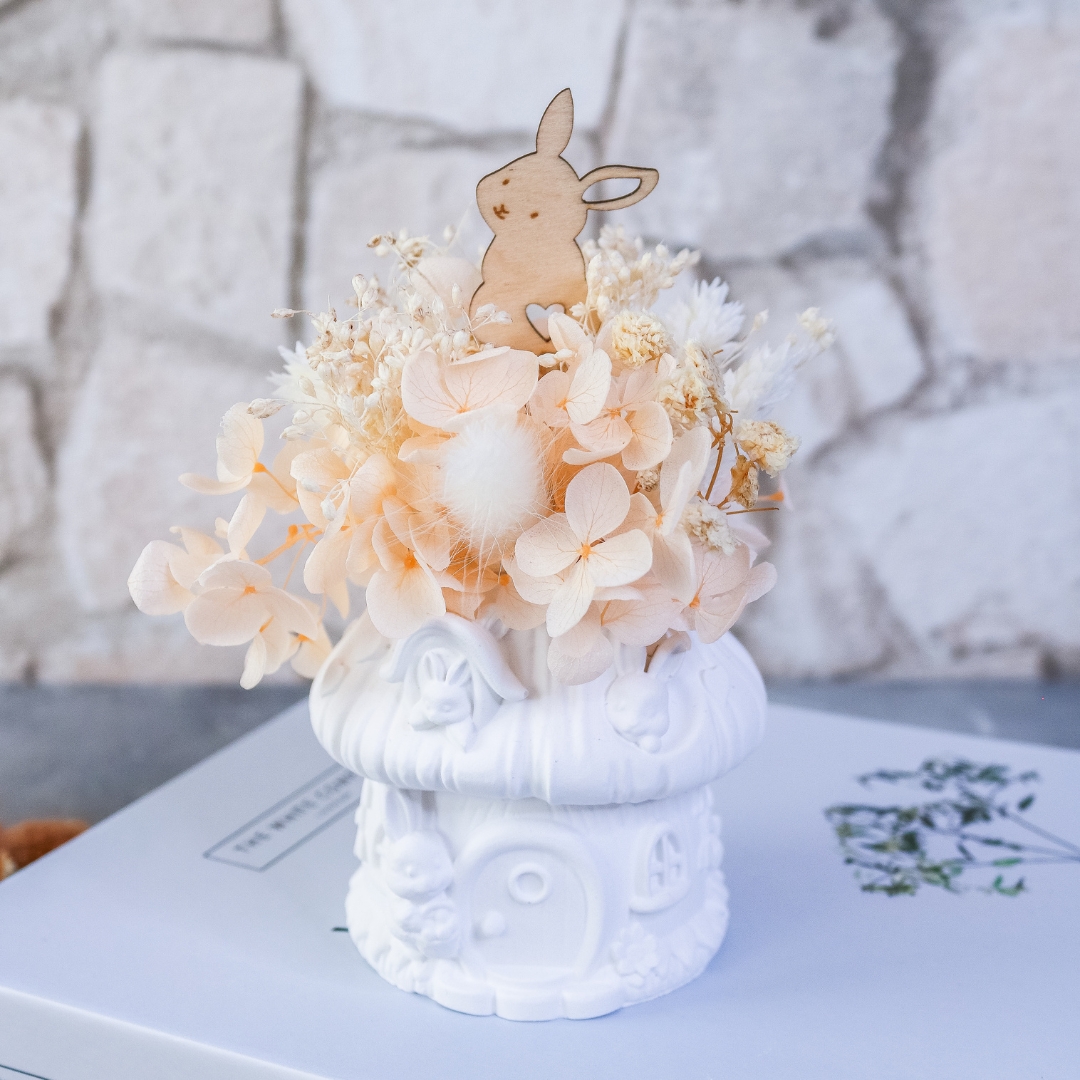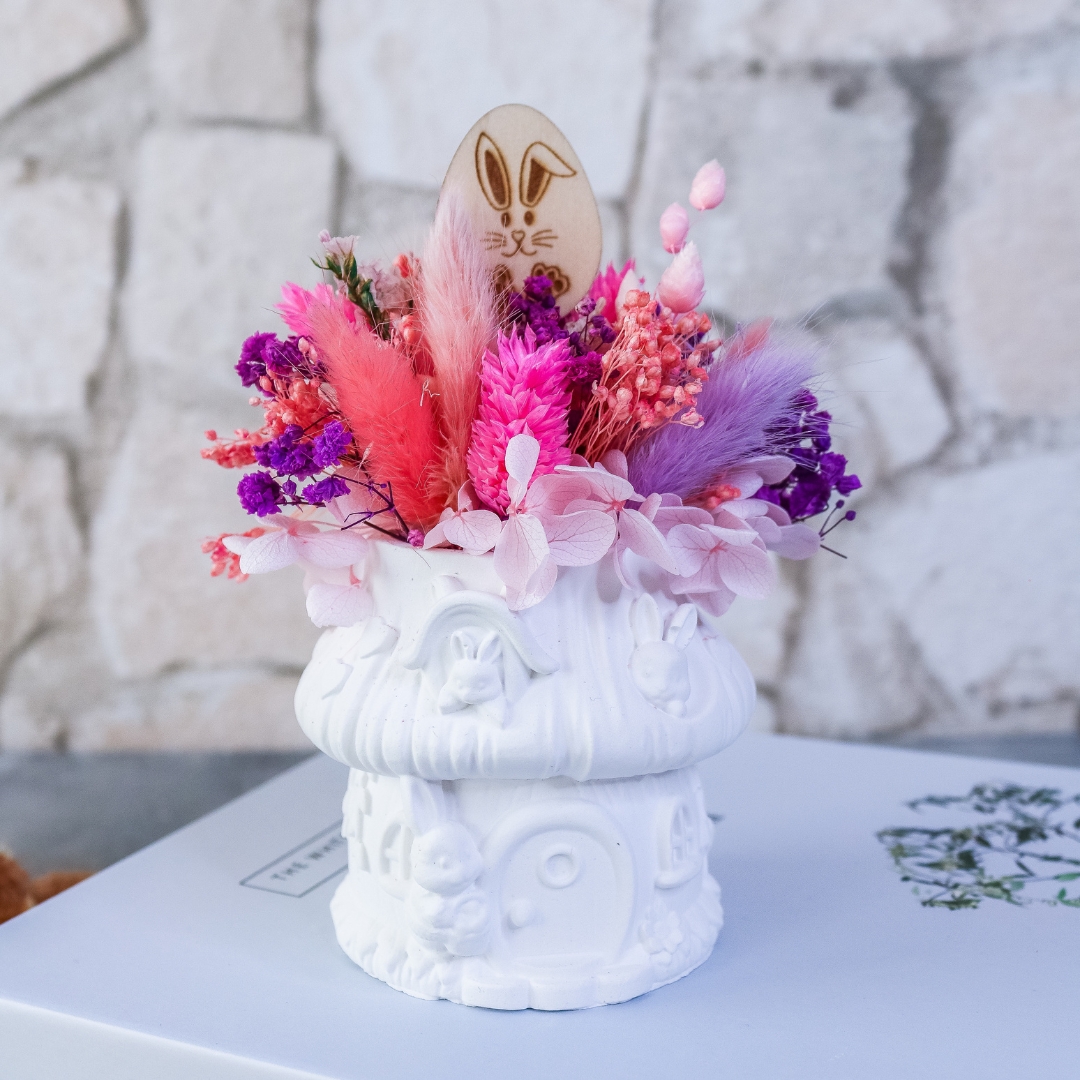 Vase Haus mit Hase – dekoriert mit Trockenblumen – Deko Hygge Geschenk Mitbringsel Ostern Frühling